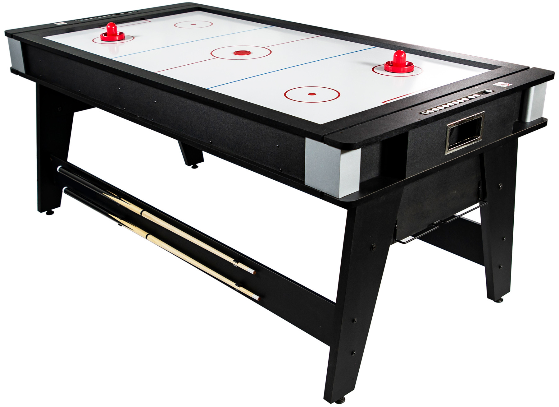 Vous êtes nostalgiques des années 80 - 90, dans les bistrots Français où vous vous retrouviez avec votre famille et vos amis jouer autour d'une table de billard, d'une table de baby foot ou encore d'une table de air hockey. Nous avons fait en sorte que ce rêve ou ses souvenirs deviennent bien réel, en créant la table multi jeux rotative 6FT. Retrouvez sur cette table trois jeux : Billard, air hockey et Ping Pong